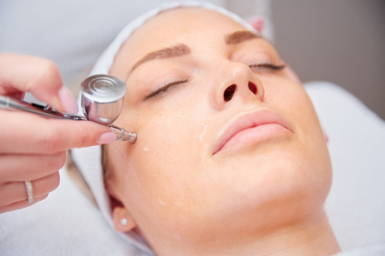 Efter afrensning sprøjtes det valgte serum på huden lidt ad gangen.