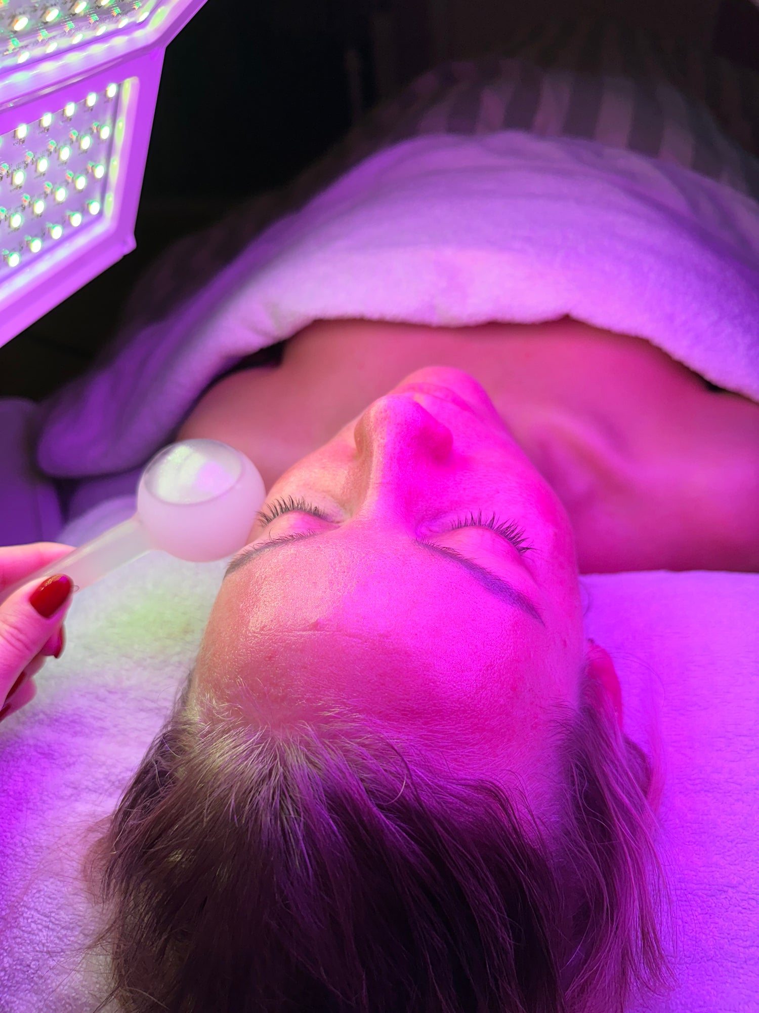 I klinikken tilbyder vi LED lysterapi, hvor vi kan behandle huden med rødt, blåt, gult, lilla og grønt lys. Denne teknologi giver os mulighed for at arbejde på celle- niveau og tilpasse behandlingen specifikt til dine behov, hvad enten du kæmper med acne, aldringstegn, sensitiv hud, eller pigmentering. Lyset reparerer simpelthen huden indefra og ud!
